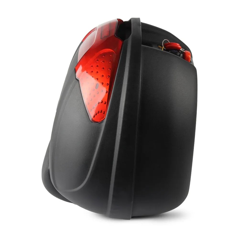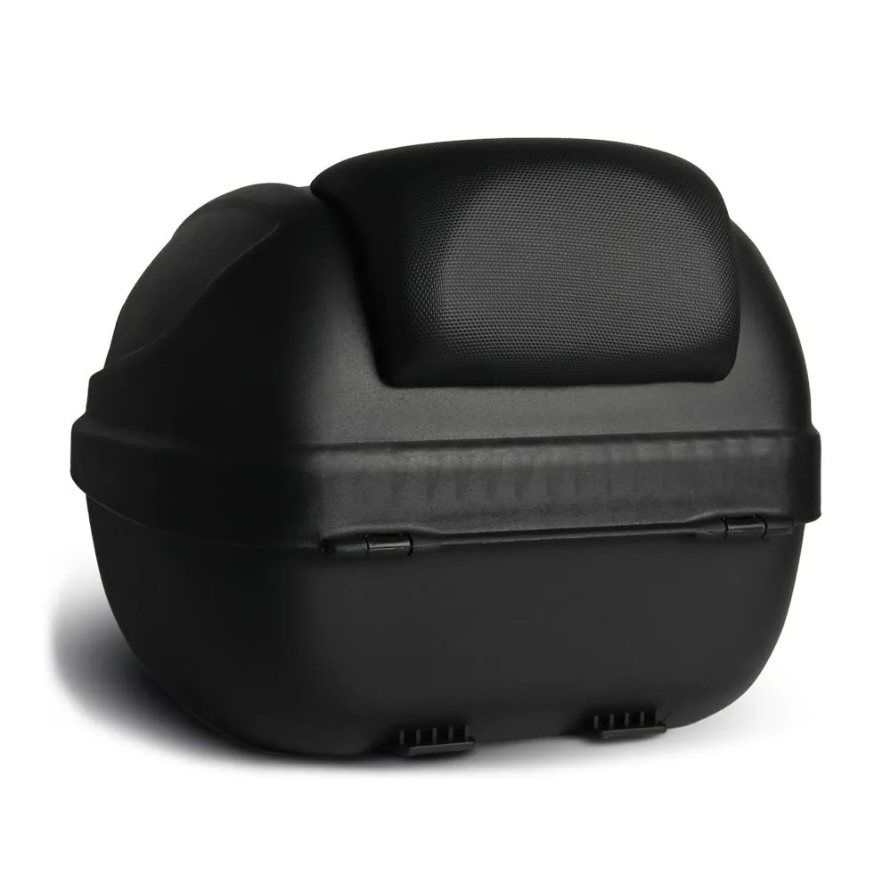 Кофр MCP E-33B имеет удобную аэродинамическую форму со скруглёнными углами. Он подходит для дорожных мотоциклов и скутеров. Кофр выполнен из ударопрочного и вязкого пластика, устойчивого к царапинам и трещинам, а также к вибрационному воздействию. Крышка кофра надежно фиксируется и не раскроется во время передвижения. В комплект входит универсальная монтажная пластина с крепежными элемнтами для фиксации на багажнике. Объем кофра составляет 30 литров, что позволяет уместить один шлем формата флип-бэк с «челюстью», откидывающейся назад. Данная модель с индексом «B» оснащена мягкой спинкой для пассажира. На задней части крышки предусмотрена накладка из красного поликарбоната со светоотражающим элементом.