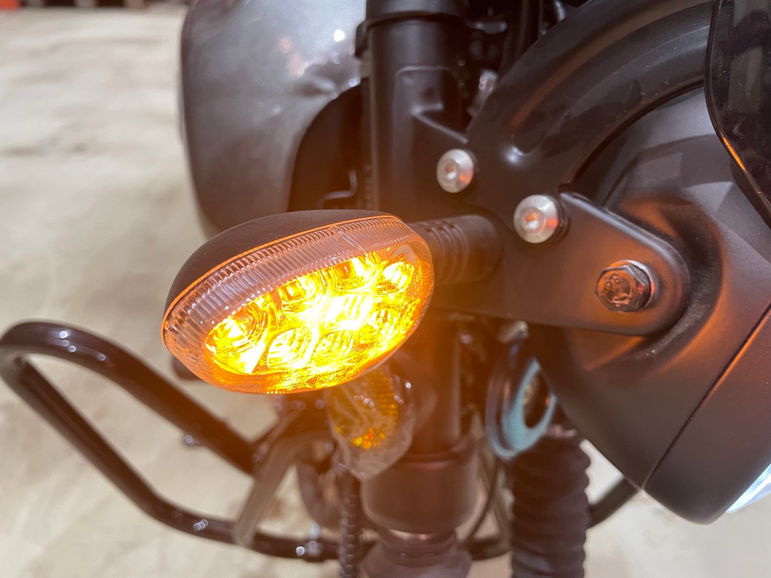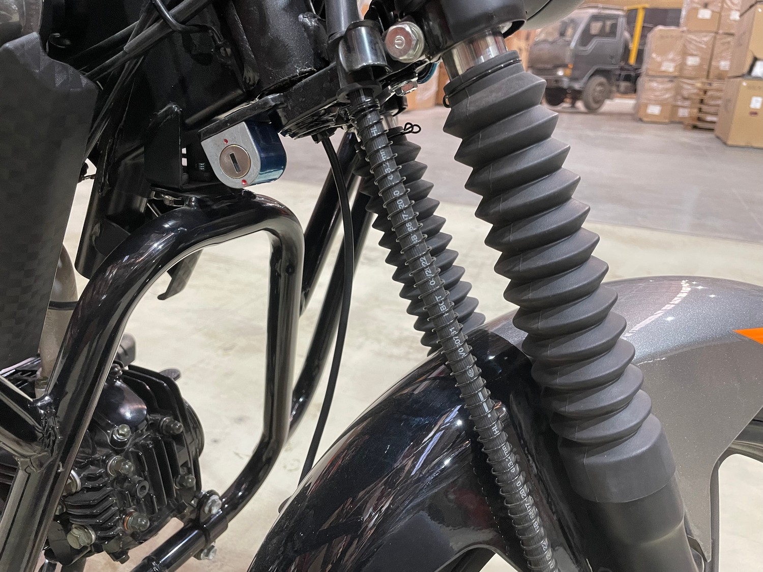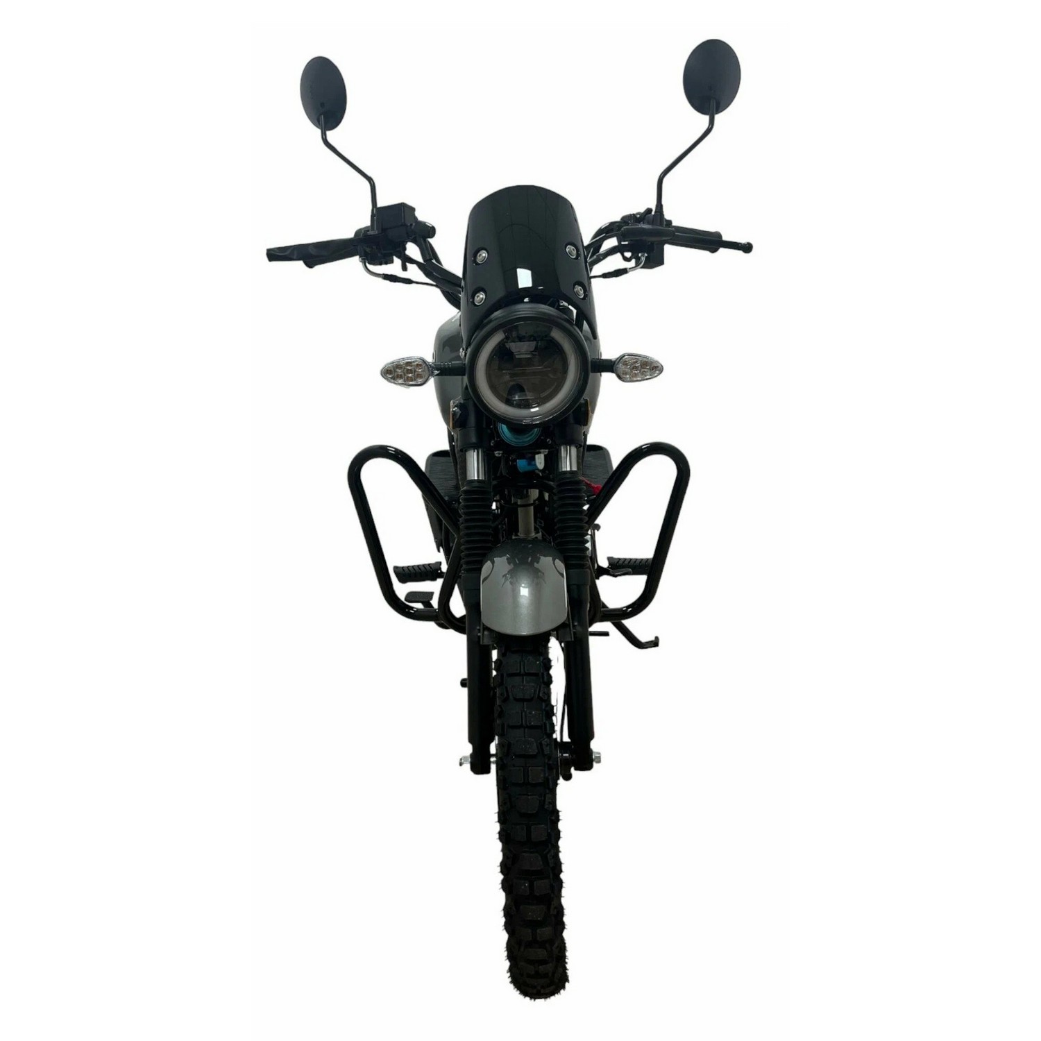Переключение передач осуществляется с помощью надёжной 4-ступенчатой механической коробки. Запуск двигателя возможен как с помощью электростартера, так и классического кик-стартера — это гарантирует удобство в любых погодных и эксплуатационных условиях. Электрическая система работает от аккумулятора ёмкостью 4 А·ч или 5 А·ч, обеспечивая стабильное питание всех электронных компонентов.