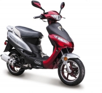 Классический вариант 50-кубового 2-х тактного скутера. Несмотря на скромные размеры, скутер может комфортно разместить 2 пассажиров, при этом откидные подножки создадут ощущение уверенности в поездке. Дополнительная особенность алюминиевый глушитель, зеркала в цвет кузова. Скутер двухместный, при этом благодаря дизайну сидения, обеспечивается комфорт при поездке. Минимальный расход топлива - 2,5 л/ 100 км.