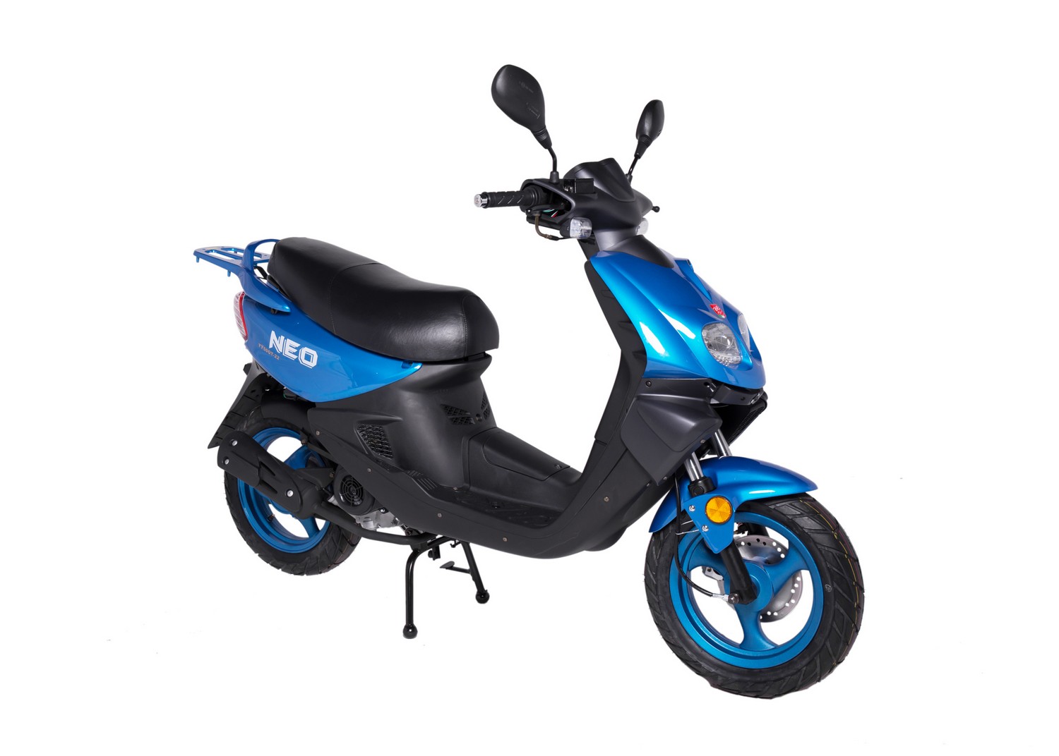 Скутер Moto-Italy Neo 72 - это достаточно комфортная городская модель, которая поможет вам быстро добраться до нужного места, при этом миновав бесконечные автомобильные пробки. Neo оборудован экономичным двигателем рабочим объемом 72 куб.см и мощность 5 л.с. Подвеска состоит из телескопической вилки и задней маятниковой части с амортизатором. За эффективное торможение отвечает передний дисковый тормоз и барабанный сзади. Модель подойдет для перевозки одного пассажира и выдержит нагрузку до 150 кг. Из дополнительных особенностей отметим задний багажник под кофр. Распространенный четырехтактный двигатель 1P139QMB не имеет проблем с ремонтом. Передние поворотники - светодиодные. Реснички под передней фарой также светодиодные.